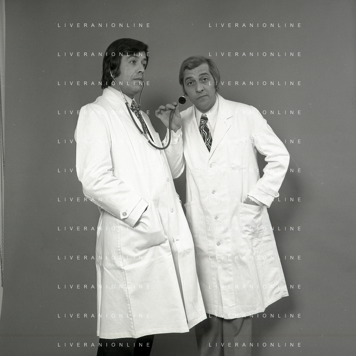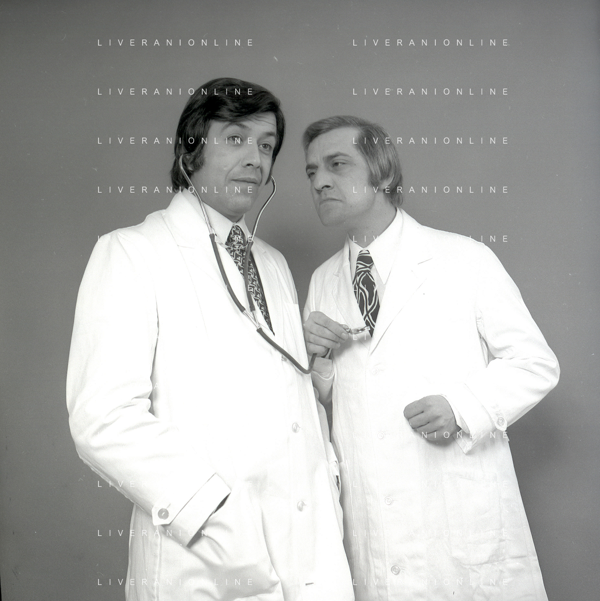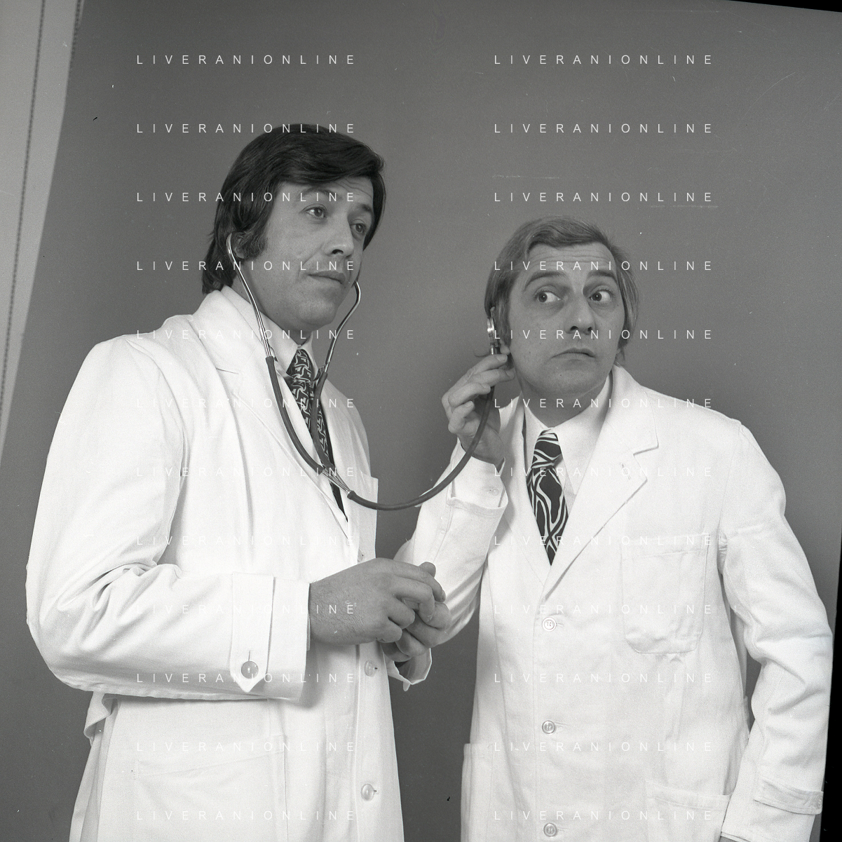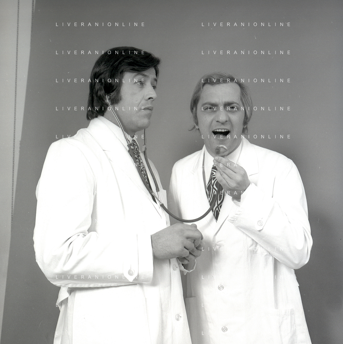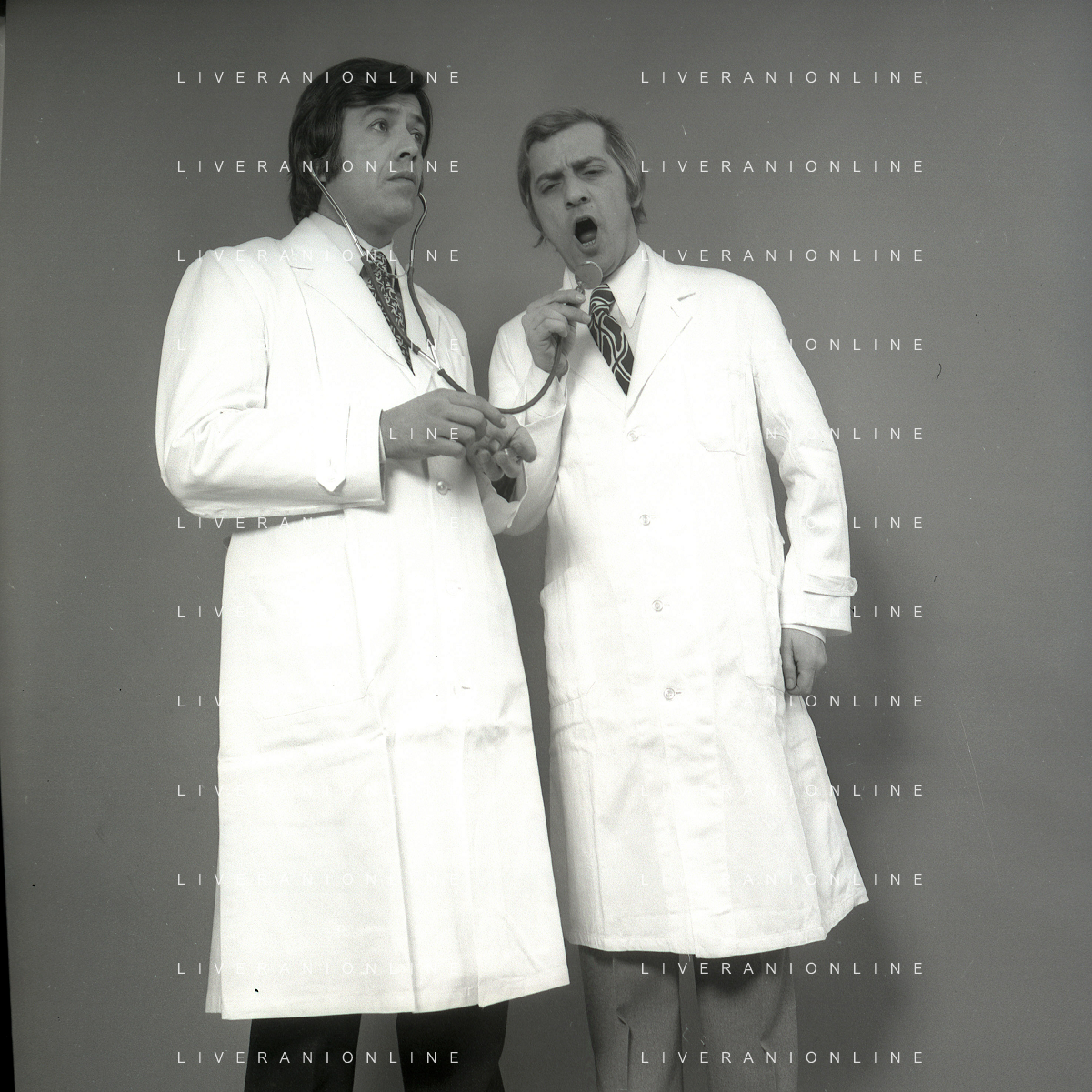 NEG-1972 RETROSPETTIVA RICCARDO MINIGGIO E GIAN FABIO BOSCO ATTORI NELLA FOTO RICCARDO MINIGGIO E GIAN FABIO BOSCO NELLA COMMEDIA TEATRALE “IL MEDICO DELLE DONNE “A MILANO NELL'ANNO 1972 AG ALDO LIVERANI SAS