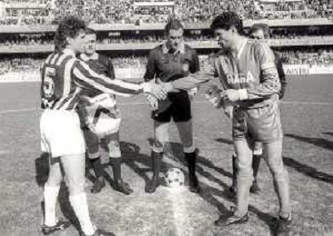 NEG-04-03-1990 VERONA-CAMPIONATO DI CALCIO SERIE A VERONA-UDINESE 2-0 NELLA FOTO L'ARBITRO CARLO LONGHI TRA I DUE CAPITANI DINO GALPAROLI E LUCIANO FAVERO AG ALDO LIVERANI SAS