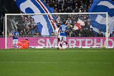 TVRG Sampdoria vs Reggiana nella foto Francesco Conti (Sampdoria) segna il gol dell'1 a 1 Genova 27-12-2025 Stadio Luigi Ferraris - Marassi Sampdoria vs Reggiana Campionato Serie BKT - 18a giornata foto Roberto Garavaglia/Agenzia Aldo Liverani sas