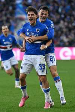 TVRG Sampdoria vs Reggiana nella foto giocatori Sampdoria esultanza dopo il gol dell'1 a 1 Genova 27-12-2025 Stadio Luigi Ferraris - Marassi Sampdoria vs Reggiana Campionato Serie BKT - 18a giornata foto Roberto Garavaglia/Agenzia Aldo Liverani sas