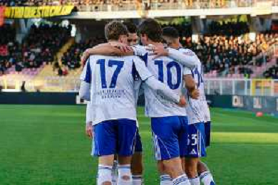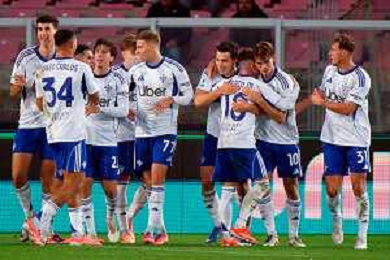 TVEM December 27, 2025 Lecce, Italy - US Lecce vs Como 1907 - Italian soccer serie A 2025/26 - Via Del Mare Stadium. In the pic: Nico Paz of Como 1907 celebrates after scoring a goal with teammates FOTO EMMANUELE MASTRODONATO-AG ALDO LIVERANI SAS