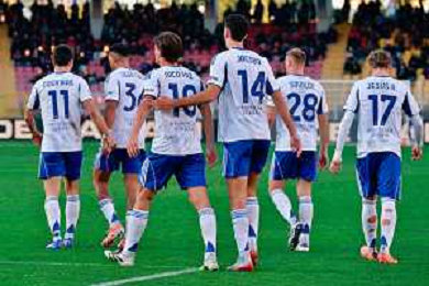 TVEM December 27, 2025 Lecce, Italy - US Lecce vs Como 1907 - Italian soccer serie A 2025/26 - Via Del Mare Stadium. In the pic: Tasos Douvikas of Como 1907 celebrates after scoring a goal with teammates FOTO EMMANUELE MASTRODONATO-AG ALDO LIVERANI SAS