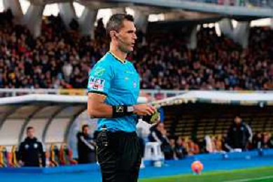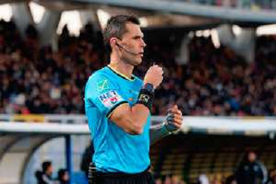 TVEM December 27, 2025 Lecce, Italy - US Lecce vs Como 1907 - Italian soccer serie A 2025/26 - Via Del Mare Stadium. In the pic: the Referee Matteo Marchetti of Ostia FOTO EMMANUELE MASTRODONATO-AG ALDO LIVERANI SAS