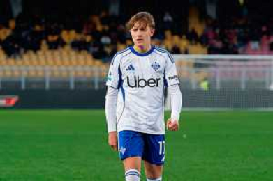 TVEM December 27, 2025 Lecce, Italy - US Lecce vs Como 1907 - Italian soccer serie A 2025/26 - Via Del Mare Stadium. In the pic: Maximo Perrone of Como 1907 FOTO EMMANUELE MASTRODONATO-AG ALDO LIVERANI SAS
