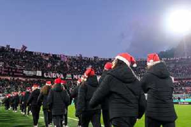 Palermo, Italia, 27 dicembre 2025. Stadio Renzo Barbera, Palermo vs Padova, match valido per il campionato di Serie B 2025/2026. Nella foto: bambini cappello di natale ©TVFS - AGENZIA ALDO LIVERANI SAS
