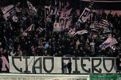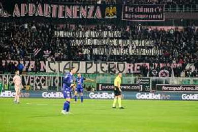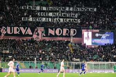 Palermo, Italia, 27 dicembre 2025. Stadio Renzo Barbera, Palermo vs Padova, match valido per il campionato di Serie B 2025/2026. Nella foto: Striscione dei Tifosi del Palermo in favore di Matteo Brunori (Palermo FC) ©TVFS - AGENZIA ALDO LIVERANI SAS