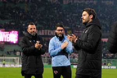 Palermo, Italia, 27 dicembre 2025. Stadio Renzo Barbera, Palermo vs Padova, match valido per il campionato di Serie B 2025/2026. Nella foto: Matteo Andreoletti (Allenatore Padova) Filippo Ranocchia (Palermo FC) e Kevin Varas (Padova) ©TVFS - AGENZIA ALDO LIVERANI SAS