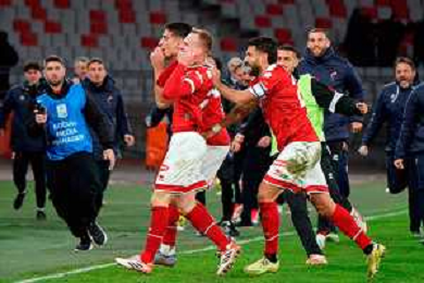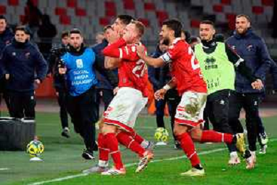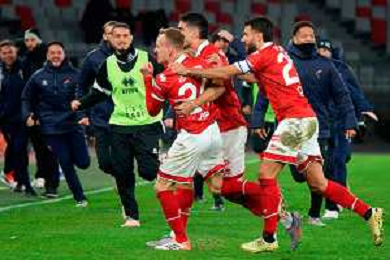 TVEM December 27, 2025 Bari, Italy - SSC Bari vs US Avellino - Italian Soccer Serie B 2025/2026 - San Nicola Stadium. In the pic: The US Avellino players hug each other ©TVEM Emmanuele Mastrodonato - AGENZIA ALDO LIVERANI SAS