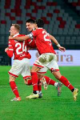 TVEM December 27, 2025 Bari, Italy - SSC Bari vs US Avellino - Italian Soccer Serie B 2025/2026 - San Nicola Stadium. In the pic: Lorenzo Maria Dickmann of SSC Bari celebrates after scoring a goal with teammates FOTO EMMANUELE MASTRODONATO-AG ALDO LIVERANI SAS