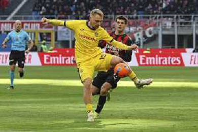 Nicolas Valentini of Hellas Verona FC play the ball during AC Milan vs Hellas Verona FC, 17° Serie A Enilive 2025-26 game at Giuseppe Meazza - San Siro stadium in Milano (MI), Italy, on Dicember 28, 2025. (Photo by Davide Casentini)- AGENZIA ALDO LIVERANI SAS