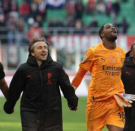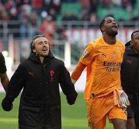 ESULTANZA DI MIKE MAIGNAN E LUKA MODRIC A FINE GARA -Milan vs Hellas Verona Campionato Calcio Serie A 28-12-2025 ©PAOLO GIAMPIETRI - AGENZIA ALDO LIVERANI SAS