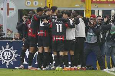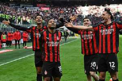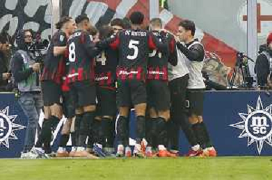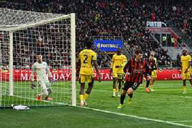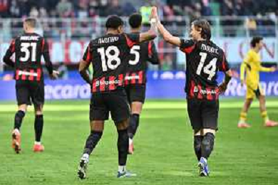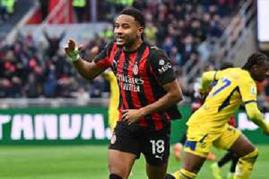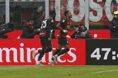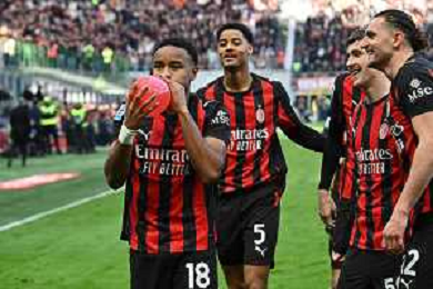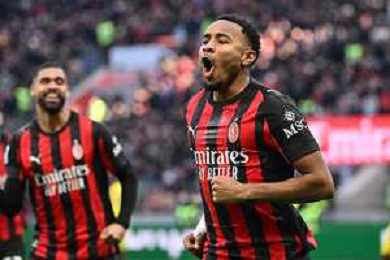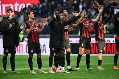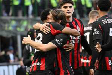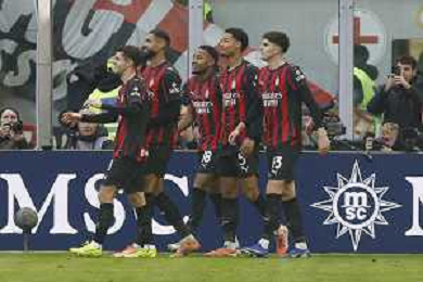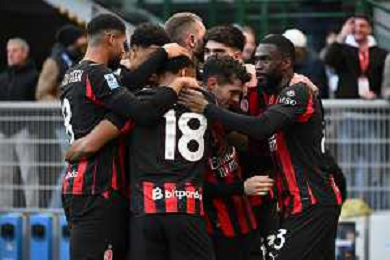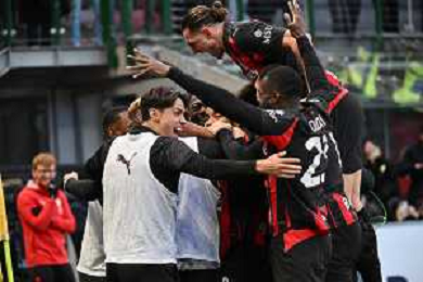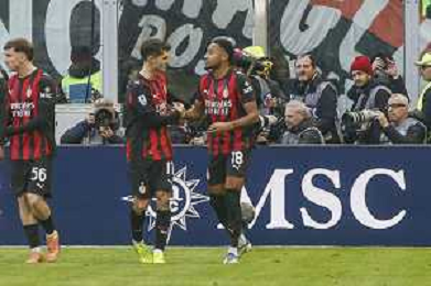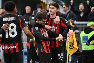 Christopher Nkunku of AC Milan celebrates with team after second personal goal during AC Milan vs Hellas Verona FC, 17° Serie A Enilive 2025-26 game at Giuseppe Meazza - San Siro stadium in Milano (MI), Italy, on Dicember 28, 2025. (Photo by Davide Casentini)- AGENZIA ALDO LIVERANI SAS