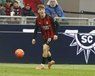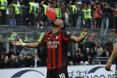 ESULTANZA DOPOGOL NKUNKU CHE GONFIA UN PALLONCINO ROSSO -Milan vs Hellas Verona Campionato Calcio Serie A 28-12-2025 ©PAOLO GIAMPIETRI - AGENZIA ALDO LIVERANI SAS