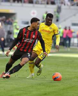 Milan vs Hellas Verona nella foto Armel Bella-Kotchap (Hellas Verona) e Christian Mate Pulisic (Milan) Milano 28-12-2025 Stadio Giuseppe Meazza - San Siro Milan vs Hellas Verona Campionato Serie A Enilive - 17a giornata foto Roberto Garavaglia/Agenzia Aldo Liverani sas