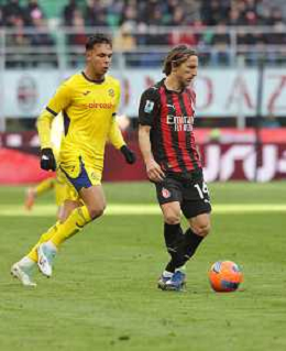 Luka Modric of AC Milan competes for the ball with Daniel Mosquera of Hellas Verona FC during AC Milan vs Hellas Verona FC, 17° Serie A Enilive 2025-26 game at Giuseppe Meazza - San Siro stadium in Milano (MI), Italy, on Dicember 28, 2025. (Photo by Davide Casentini)- AGENZIA ALDO LIVERANI SAS