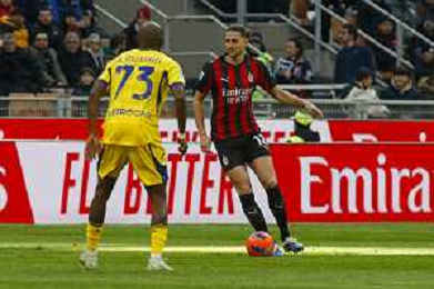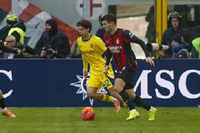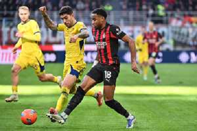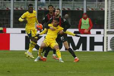 Antoine Joseph Bernède of Hellas Verona FC play the ball during AC Milan vs Hellas Verona FC, 17° Serie A Enilive 2025-26 game at Giuseppe Meazza - San Siro stadium in Milano (MI), Italy, on Dicember 28, 2025. (Photo by Davide Casentini)- AGENZIA ALDO LIVERANI SAS
