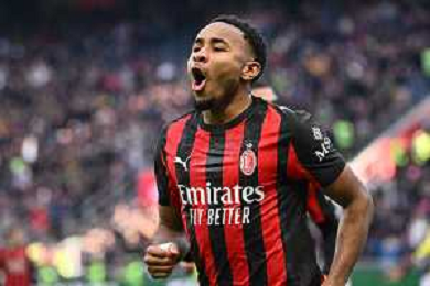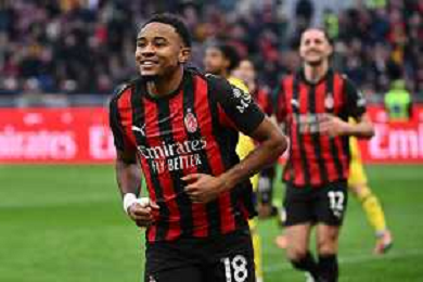 Christopher Nkunku of AC Milan celebrates after scoring first goal during AC Milan vs Hellas Verona FC, 17° Serie A Enilive 2025-26 game at Giuseppe Meazza - San Siro stadium in Milano (MI), Italy, on Dicember 28, 2025. (Photo by Davide Casentini)- AGENZIA ALDO LIVERANI SAS