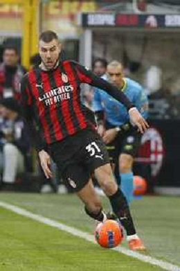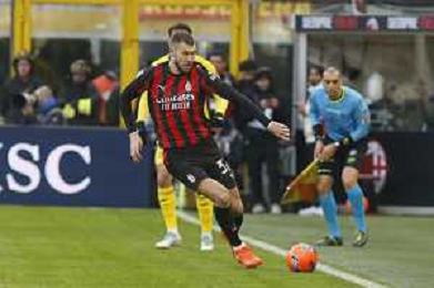 Alexis Saelemaekers of AC Milan play the ball during AC Milan vs Hellas Verona FC, 17° Serie A Enilive 2025-26 game at Giuseppe Meazza - San Siro stadium in Milano (MI), Italy, on Dicember 28, 2025. (Photo by Davide Casentini)- AGENZIA ALDO LIVERANI SAS