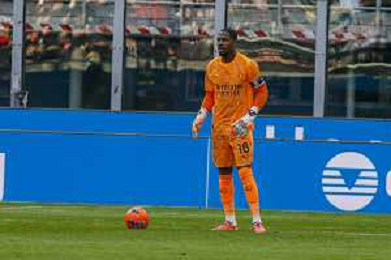 Mike Maignan of AC Milan play the ball during AC Milan vs Hellas Verona FC, 17° Serie A Enilive 2025-26 game at Giuseppe Meazza - San Siro stadium in Milano (MI), Italy, on Dicember 28, 2025. (Photo by Davide Casentini)- AGENZIA ALDO LIVERANI SAS