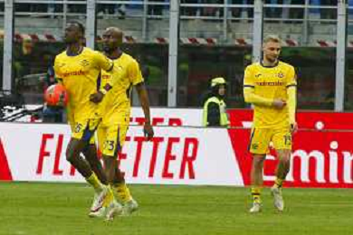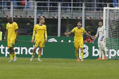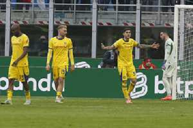Hellas Veorna players expresses disappointment after second goal of Christopher Nkunku of AC Milan during AC Milan vs Hellas Verona FC, 17° Serie A Enilive 2025-26 game at Giuseppe Meazza - San Siro stadium in Milano (MI), Italy, on Dicember 28, 2025. (Photo by Davide Casentini)- AGENZIA ALDO LIVERANI SAS