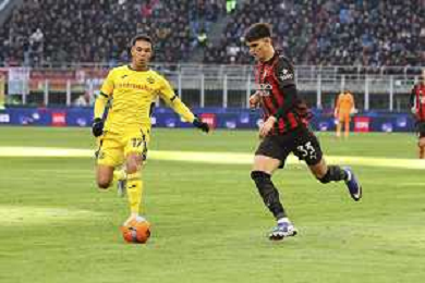 Davide Bartesaghi of AC Milan. play the ball during AC Milan vs Hellas Verona FC, 17° Serie A Enilive 2025-26 game at Giuseppe Meazza - San Siro stadium in Milano (MI), Italy, on Dicember 28, 2025. (Photo by Davide Casentini)- AGENZIA ALDO LIVERANI SAS