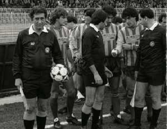 NEG-08-12-1985 LECCE-CAMPIIONATO DI CALCIO SERIE A LECCE -COMO 1-4 NELLA FOTO TERNA ARBITRALE ARBITRO PIETRO D'ELIA AG ALDO LIVERANI SAS