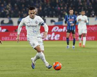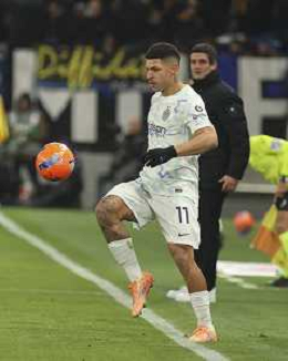 Lautaro Martínez of Inter FC play the ball during Atalanta BC vs Internazionale FC, 17° Serie A Enilive 2025-26 game at New Balance arena in Bergamo (BG), Italy, on Dicember 28, 2025. (Photo by Davide Casentini)- AGENZIA ALDO LIVERANI SAS
