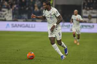 Marcus Thuram of Inter FC play the ball during Atalanta BC vs Internazionale FC, 17° Serie A Enilive 2025-26 game at New Balance arena in Bergamo (BG), Italy, on Dicember 28, 2025. (Photo by Davide Casentini)- AGENZIA ALDO LIVERANI SAS