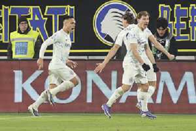 Atalanta vs Inter nella foto Charles de Ketelaere (Atalanta) tra Federico Dimarco (Inter) e Alessandro Bastoni (Inter) Bergamo 28-12-2025 New Balance Arena - Stadio di Bergamo Atalanta vs Inter Campionato Serie A Enilive - 17a giornata foto Roberto Garavaglia/Agenzia Aldo Liverani sas
