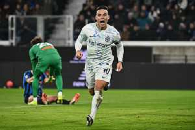 Lautaro Martínez of Inter FC celebrates after scoring during Atalanta BC vs Internazionale FC, 17° Serie A Enilive 2025-26 game at New Balance arena in Bergamo (BG), Italy, on Dicember 28, 2025. (Photo by Davide Casentini)- AGENZIA ALDO LIVERANI SAS
