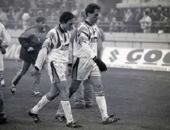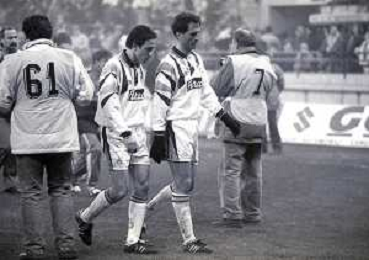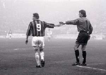 NEG-10-02-1993 MILANO COPPA ITALIA QUARTI DI FINALE DI RITORNO INTER-MILAN 0-3 NELLA FOTO JEAN PIERRE PAPIN E ITALO GALBIATI AG ALDO LIVERANI SAS