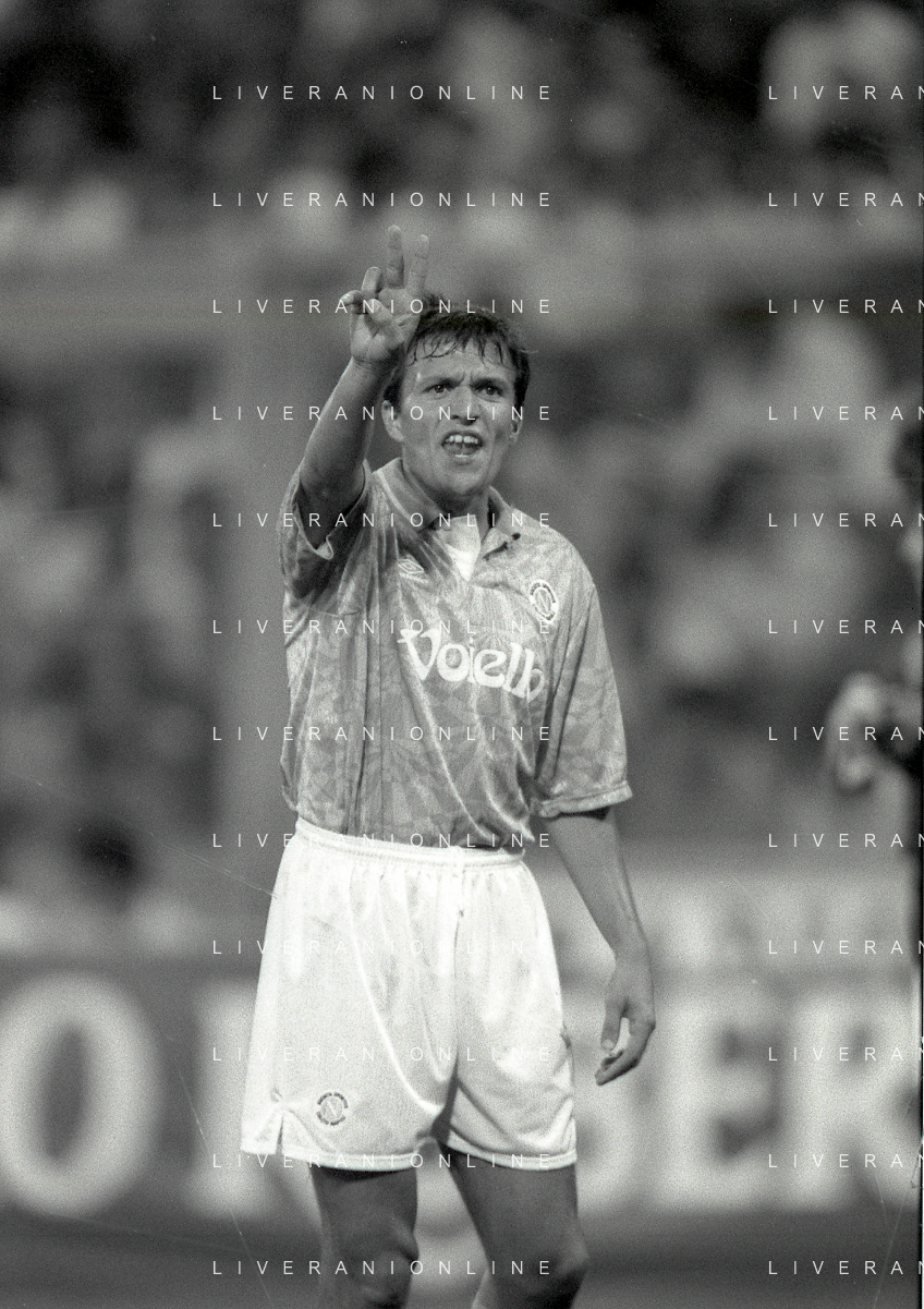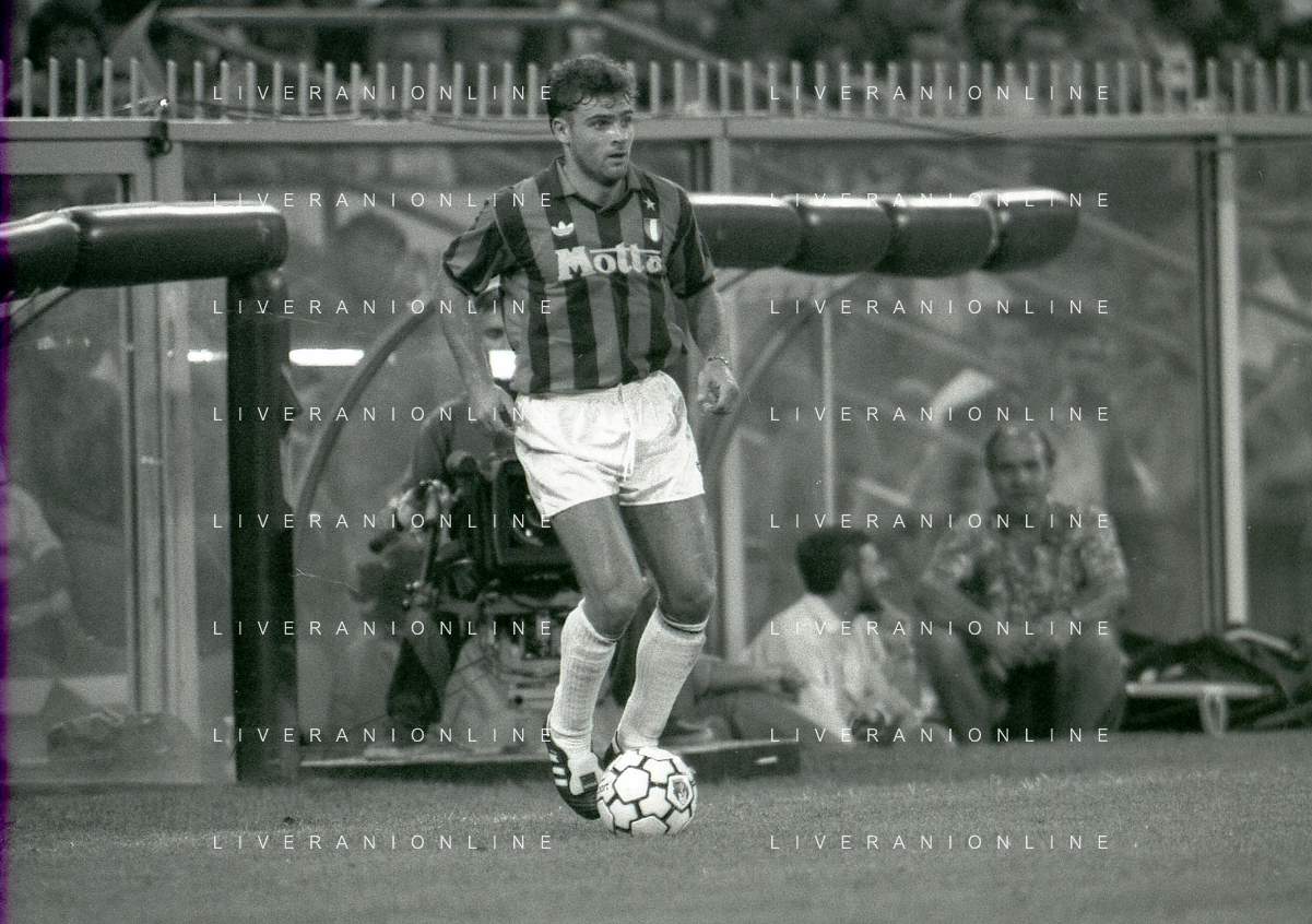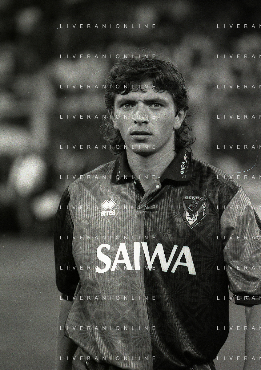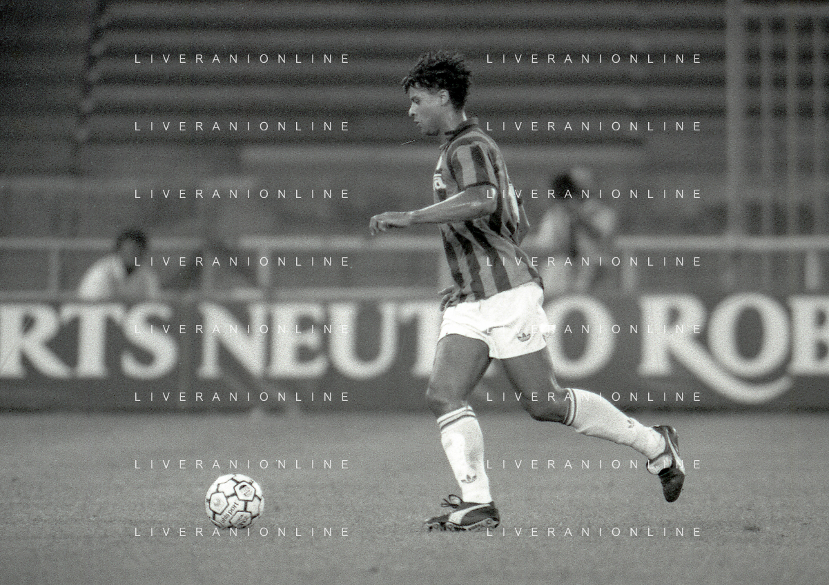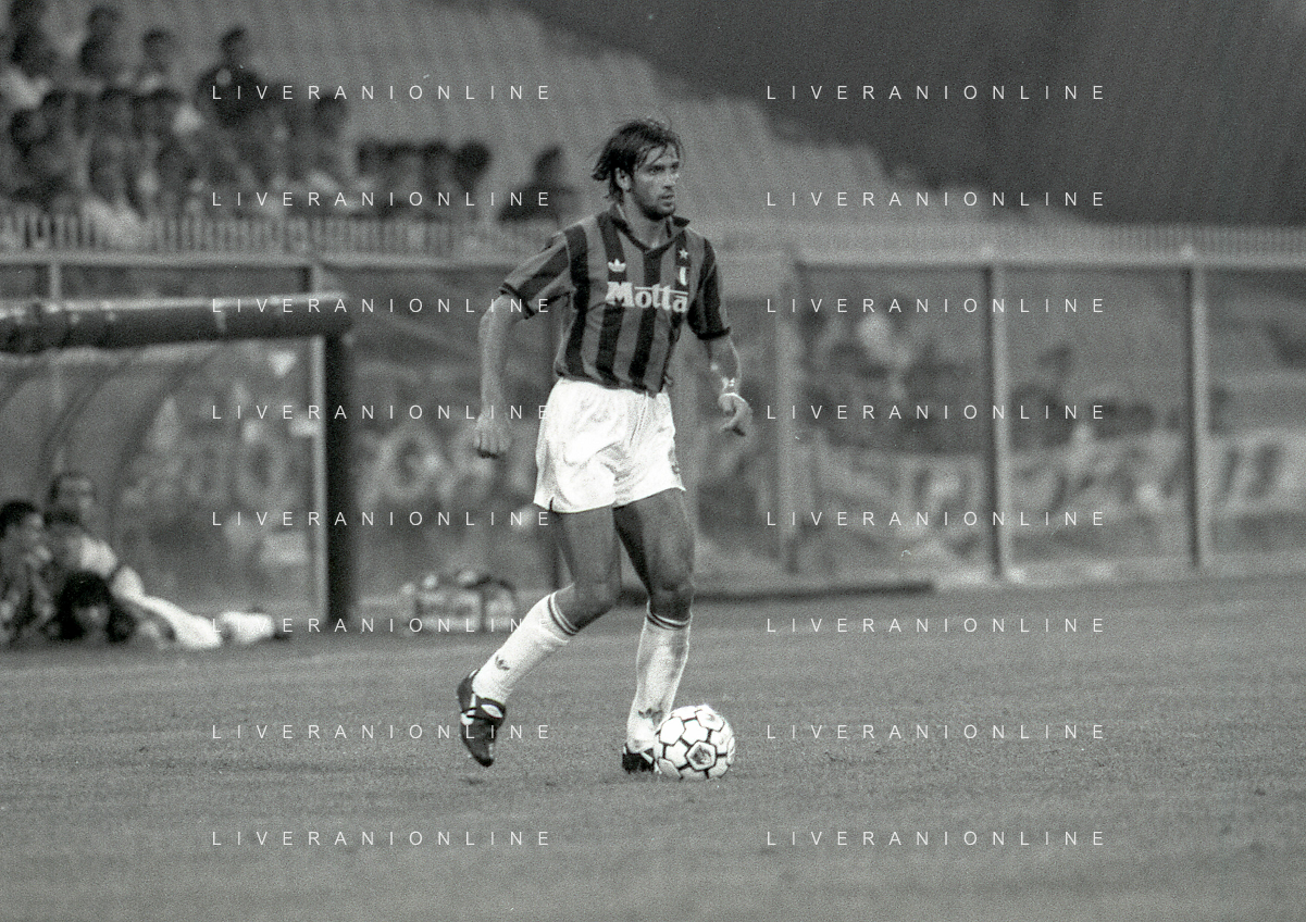 NEG-12-08-1992 GENOVA -TRIANGOLARE DEL MEDITERRANEO CON MILAN-GENOA E NAPOLI NELLA FOTO PREMIAZIONE FRANCO BARESI CAPITANO DEL MILAN AG ALDO LIVERANI SAS