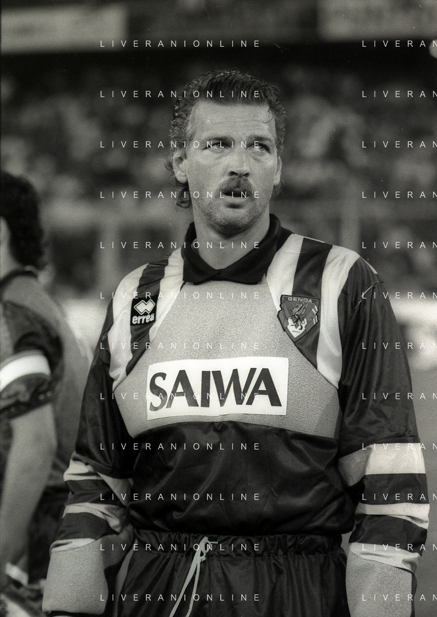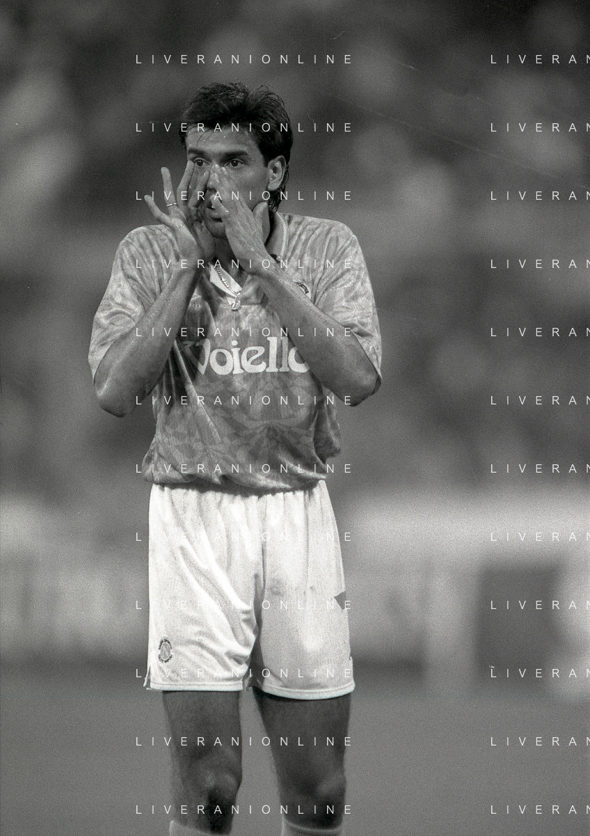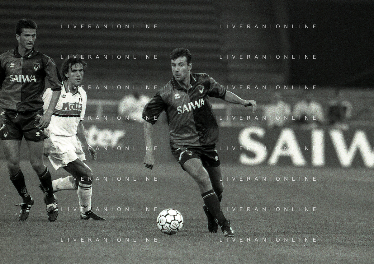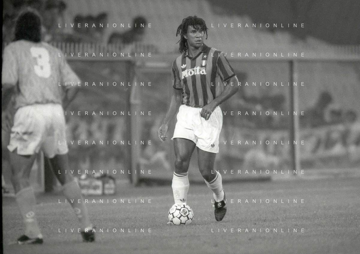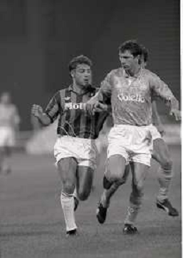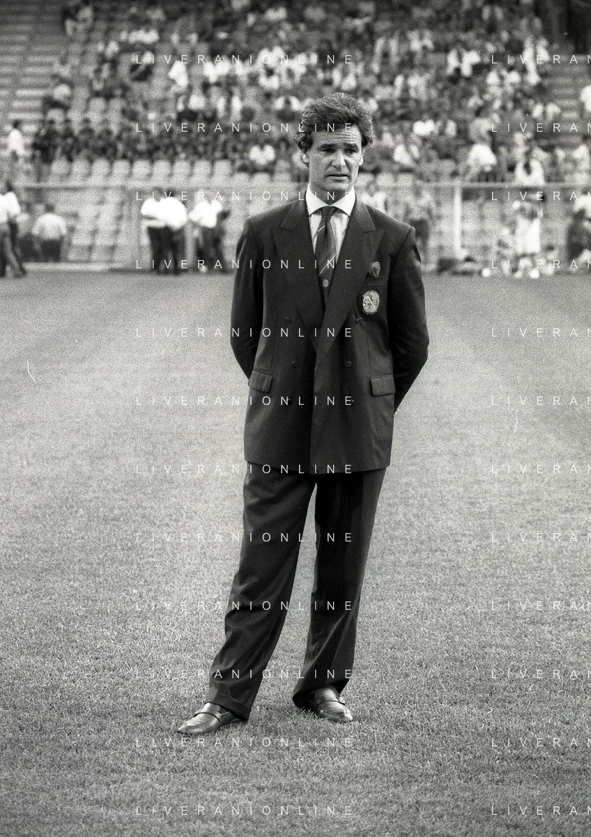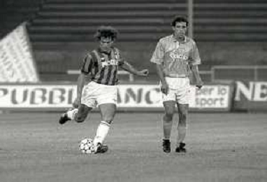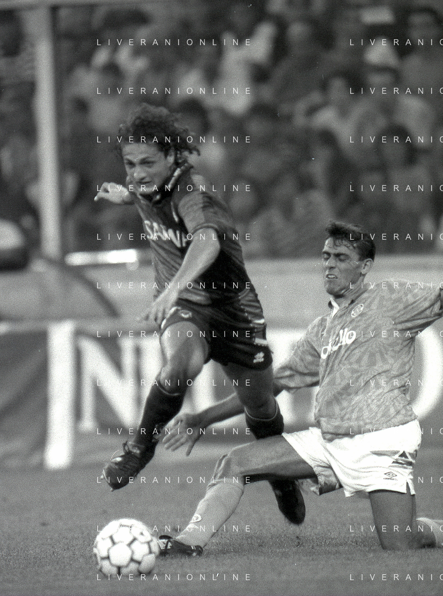 NEG-12-08-1992 GENOVA -TRIANGOLARE DEL MEDITERRANEO CON MILAN-GENOA E NAPOLI NELLA FOTO PREMIAZIONE FRANCO BARESI CAPITANO DEL MILAN AG ALDO LIVERANI SAS
