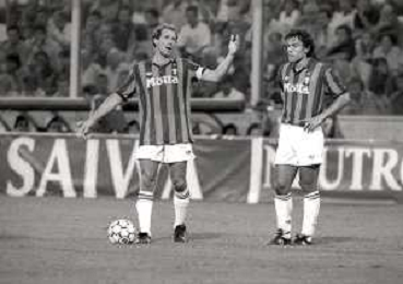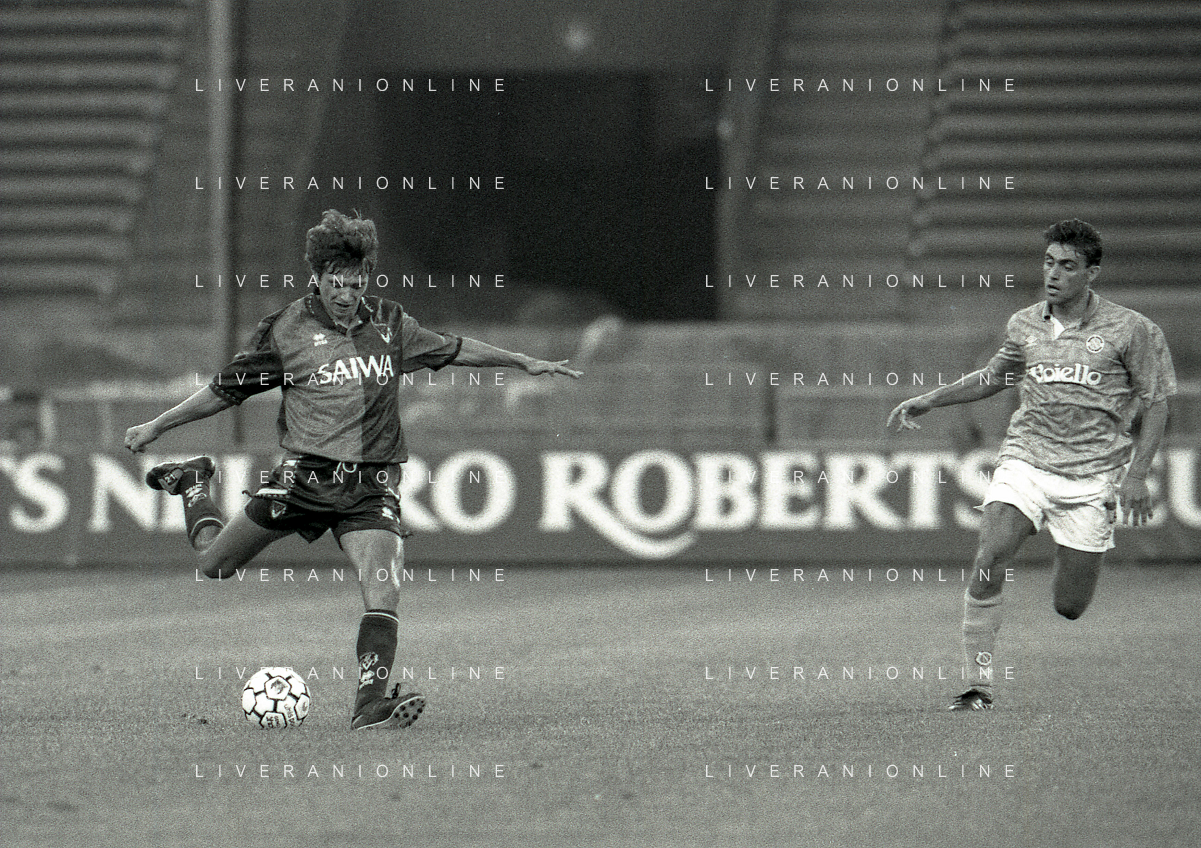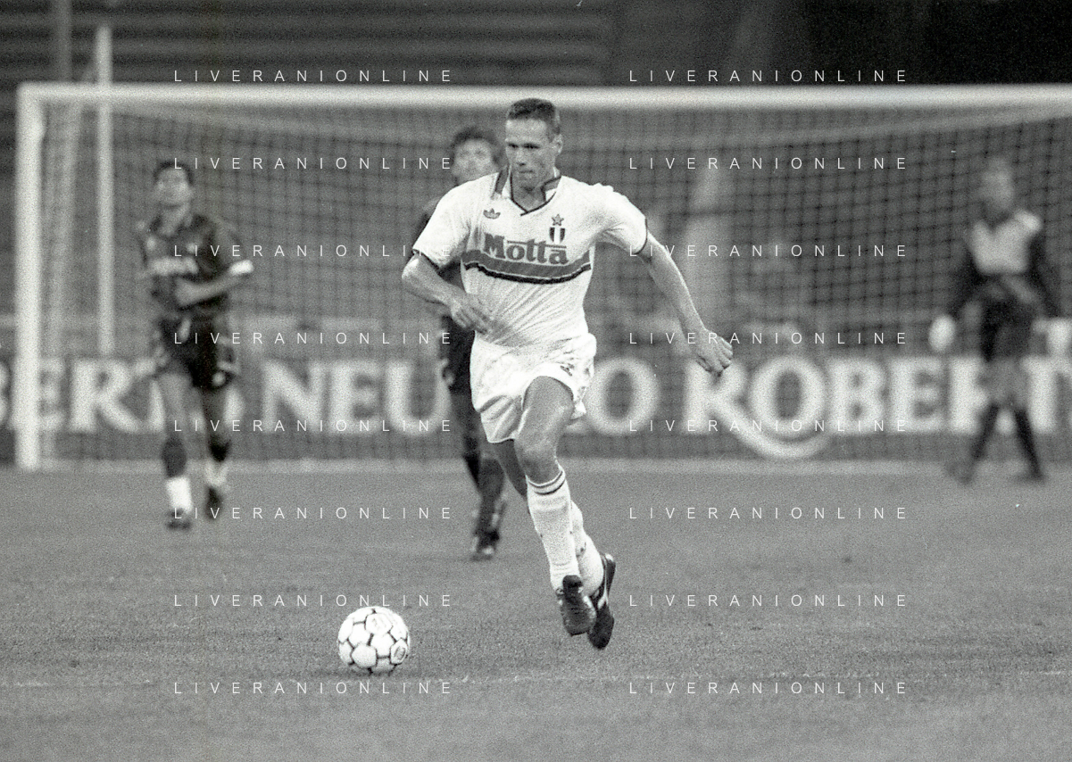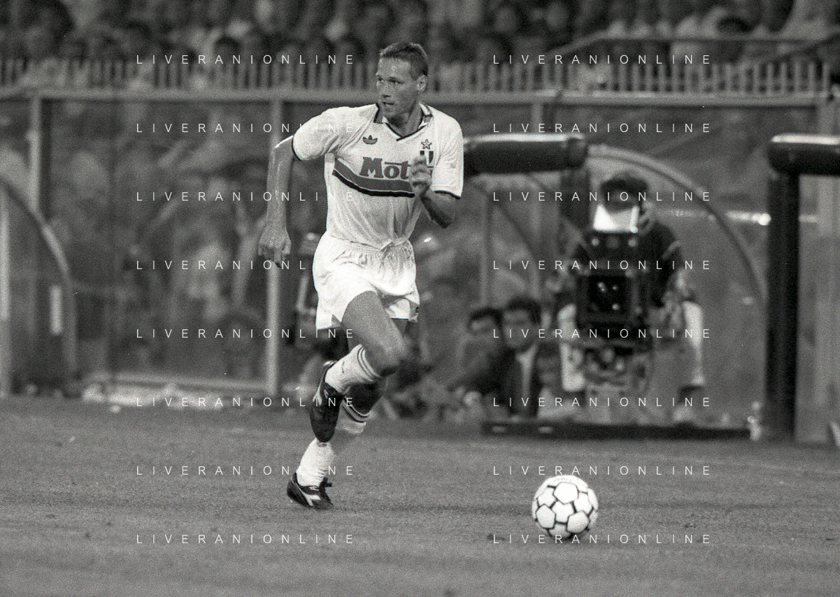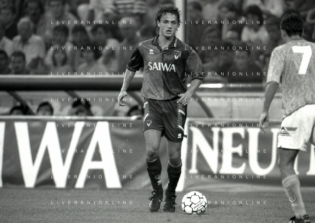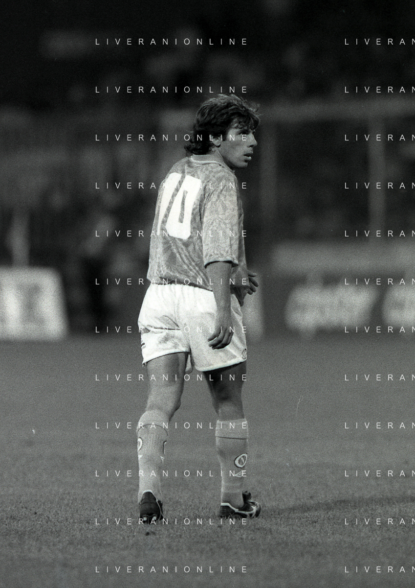 NEG-12-08-1992 GENOVA -TRIANGOLARE DEL MEDITERRANEO CON MILAN-GENOA E NAPOLI NELLA FOTO PREMIAZIONE FRANCO BARESI CAPITANO DEL MILAN AG ALDO LIVERANI SAS
