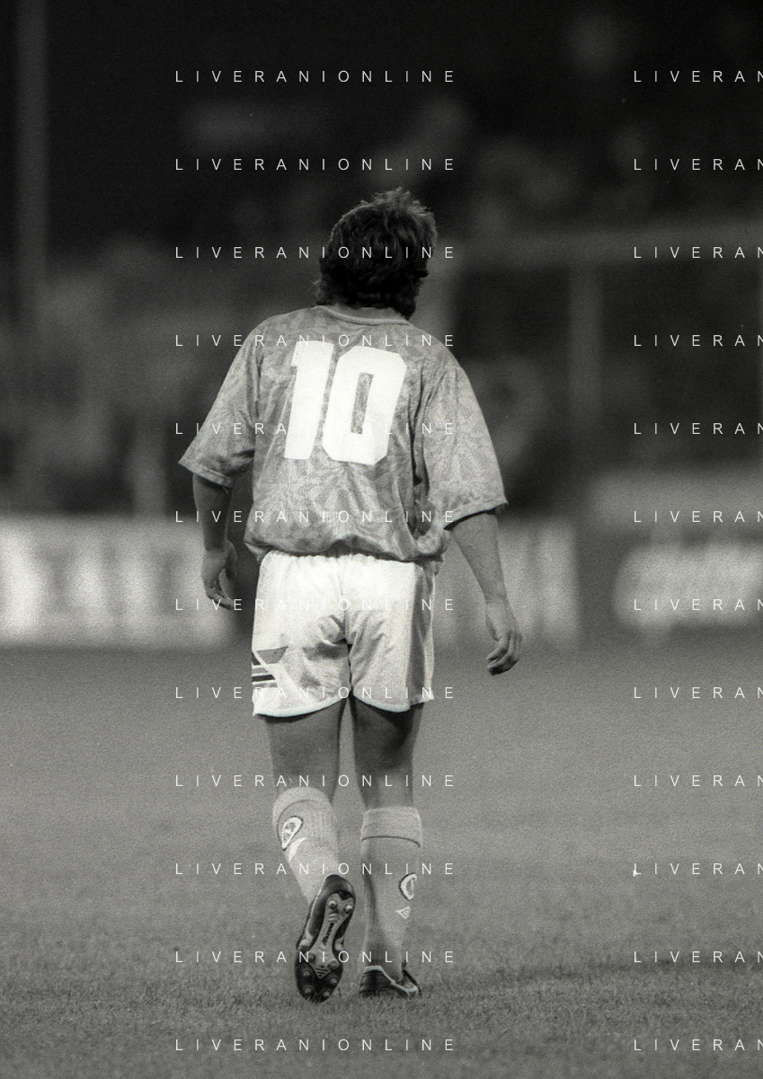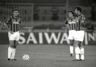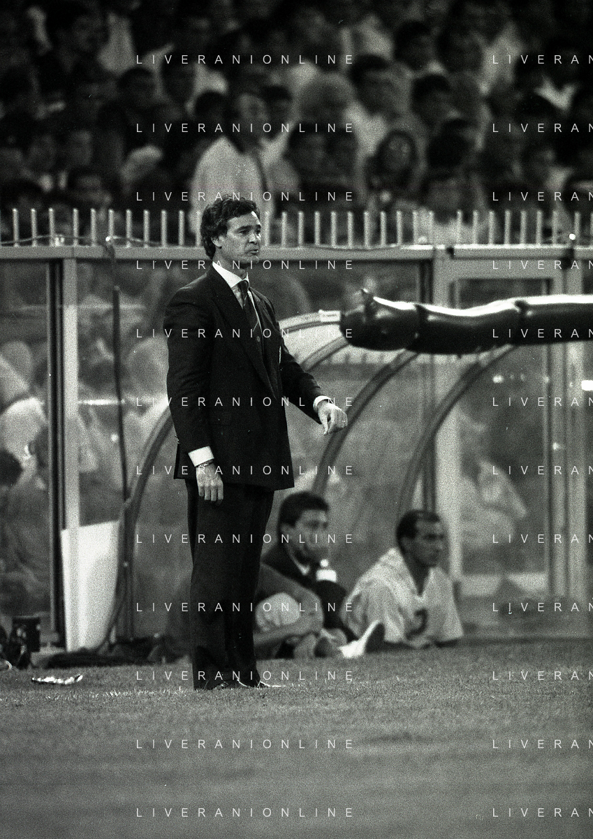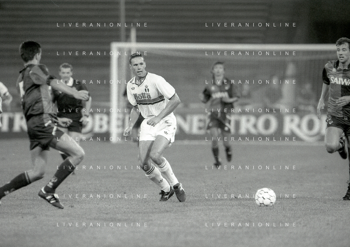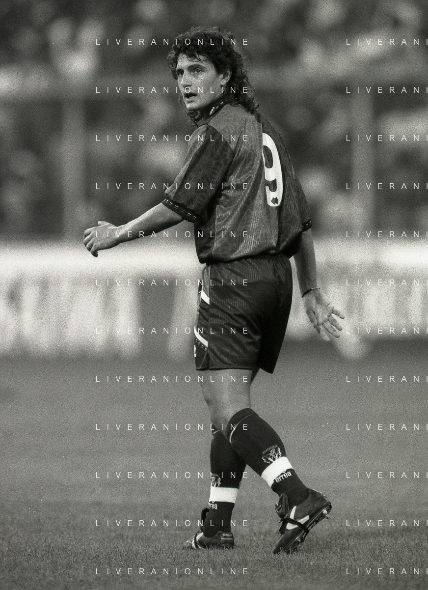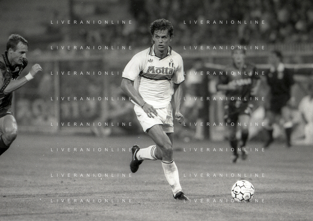 NEG-12-08-1992 GENOVA -TRIANGOLARE DEL MEDITERRANEO CON MILAN-GENOA E NAPOLI NELLA FOTO PREMIAZIONE FRANCO BARESI CAPITANO DEL MILAN AG ALDO LIVERANI SAS