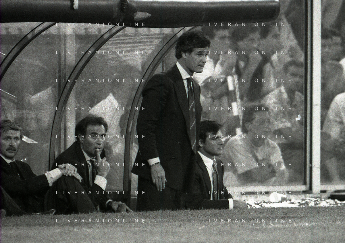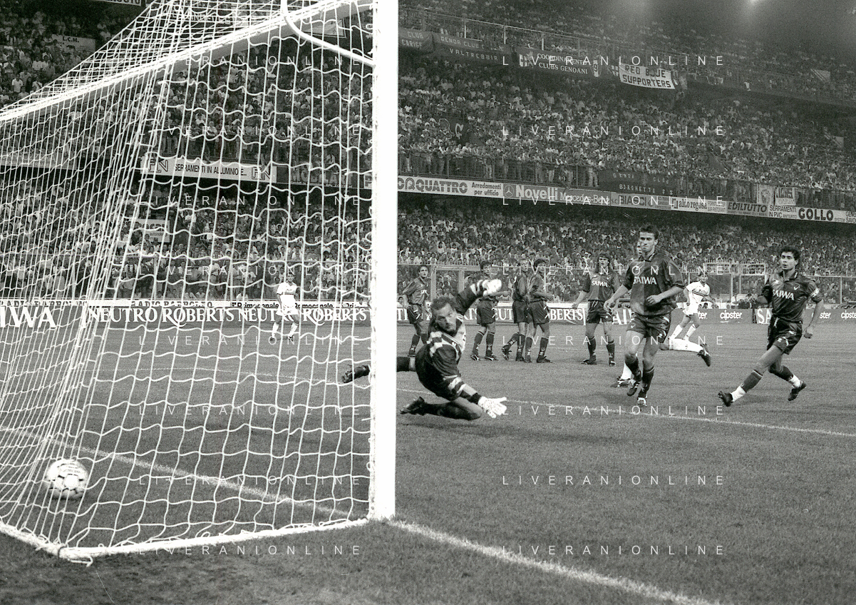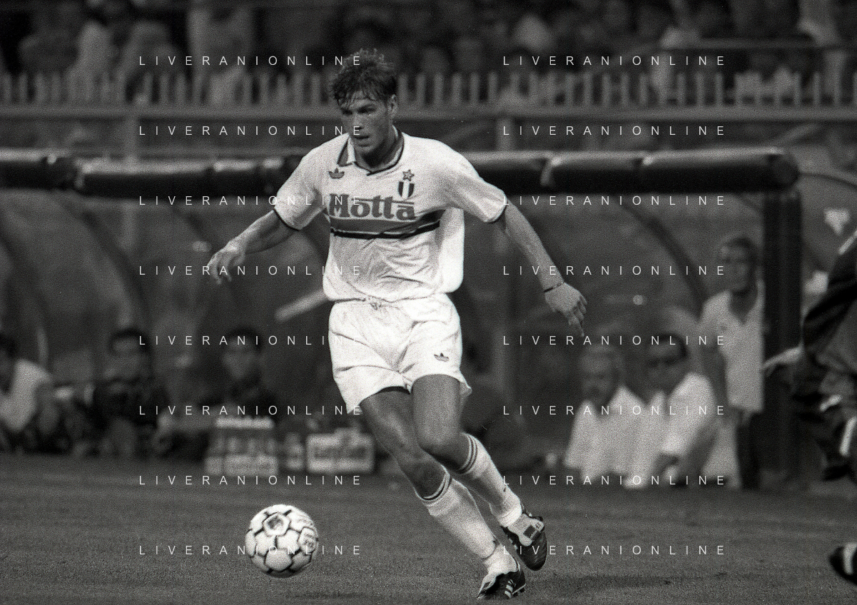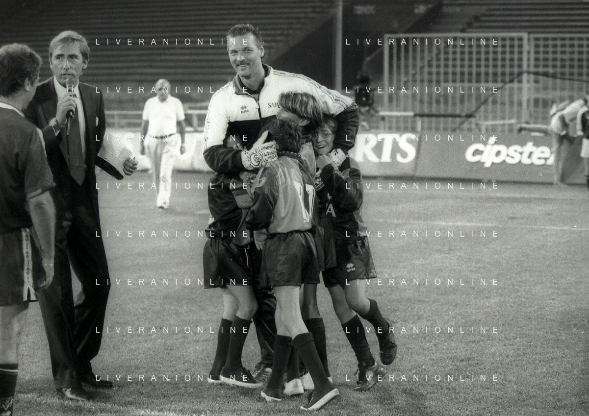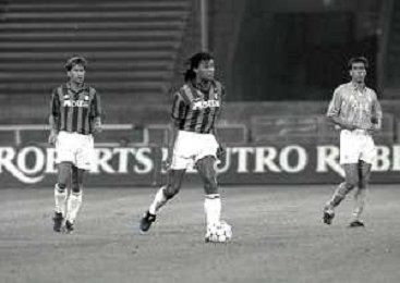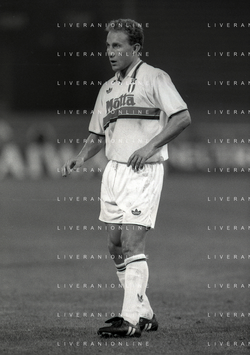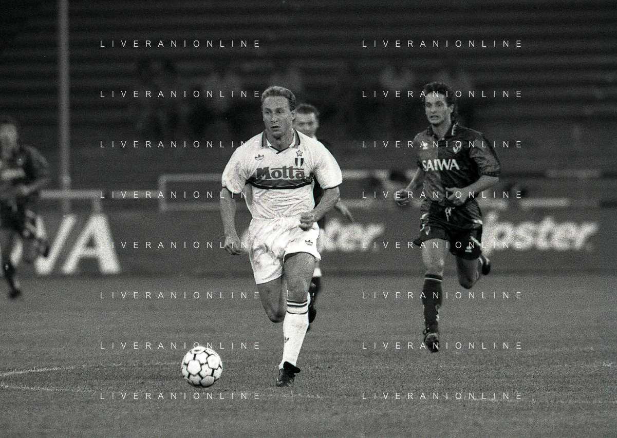NEG-12-08-1992 GENOVA -TRIANGOLARE DEL MEDITERRANEO CON MILAN-GENOA E NAPOLI NELLA FOTO PREMIAZIONE FRANCO BARESI CAPITANO DEL MILAN AG ALDO LIVERANI SAS
