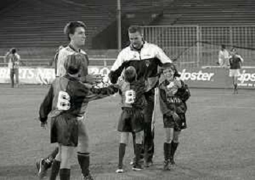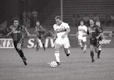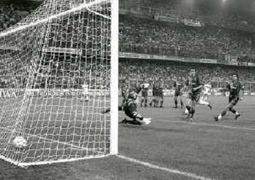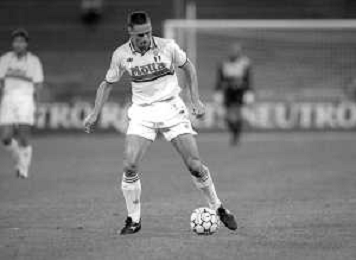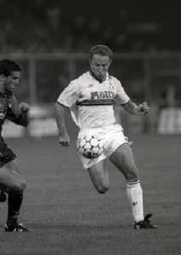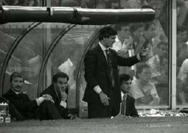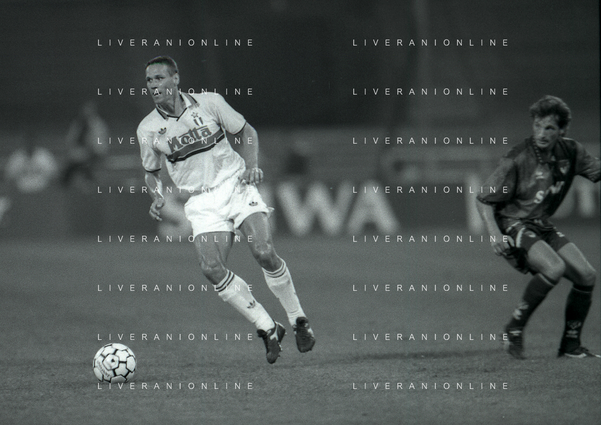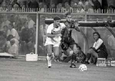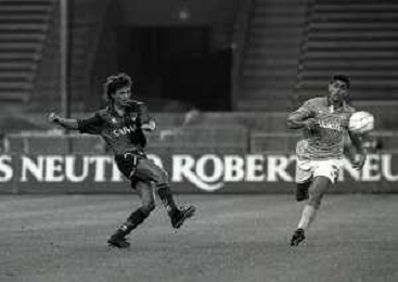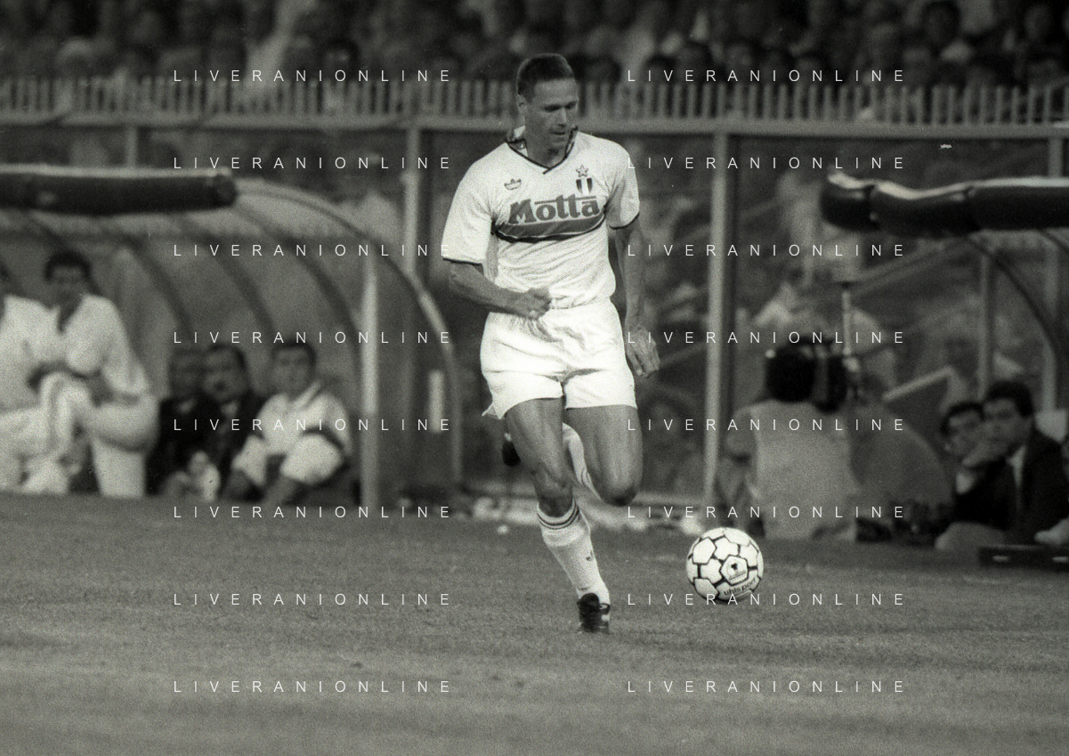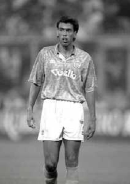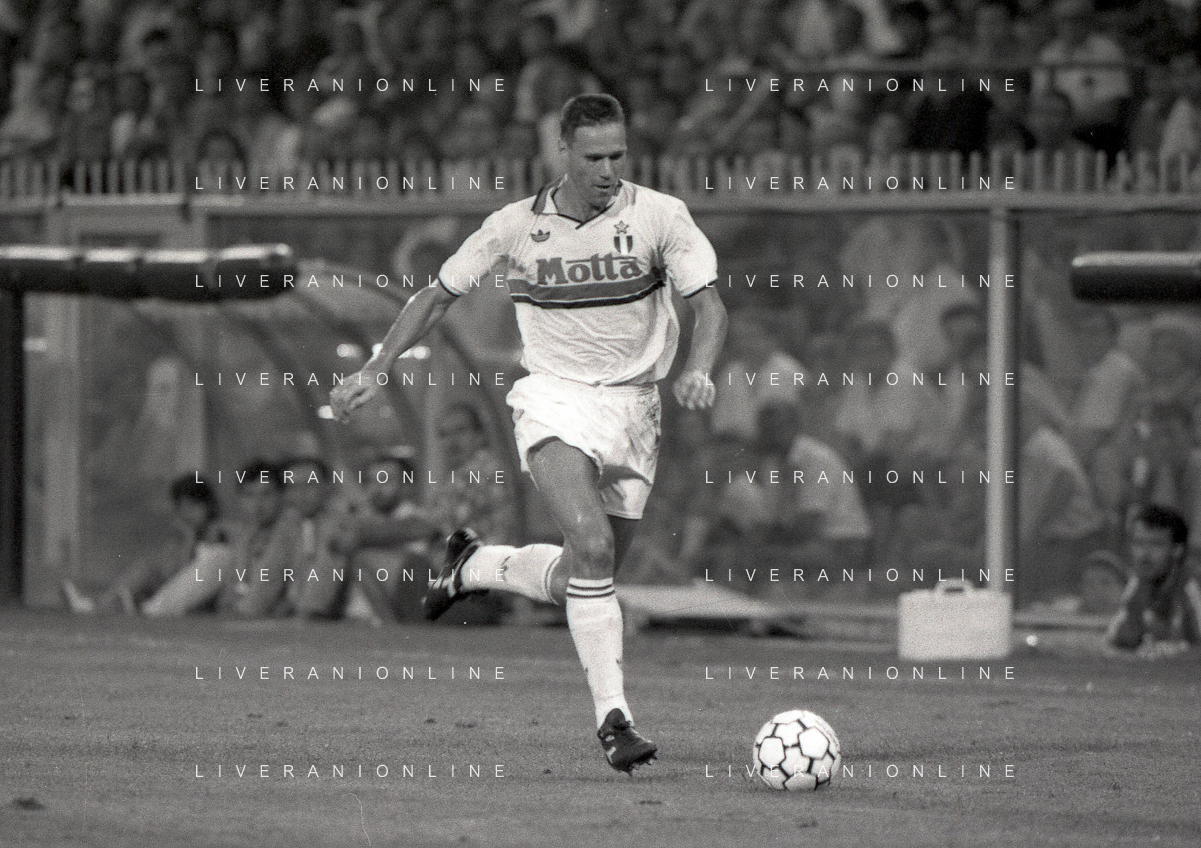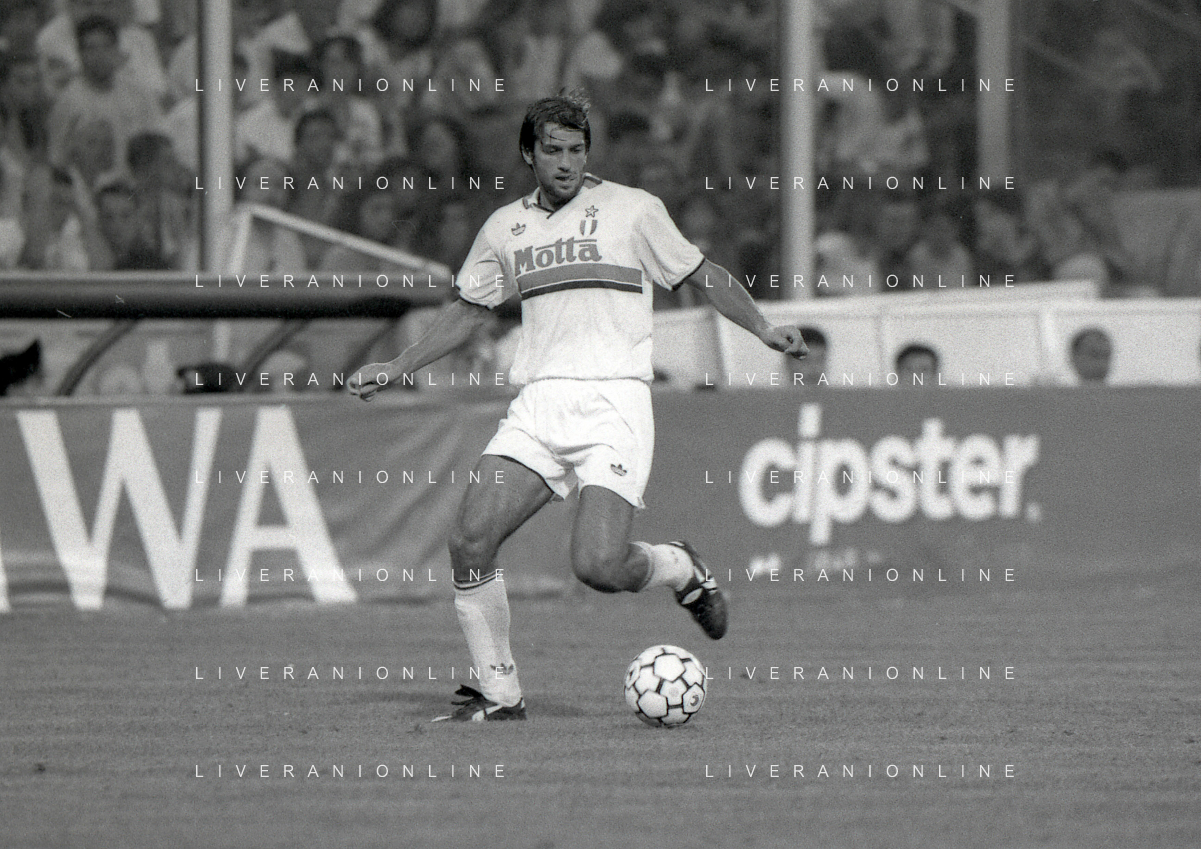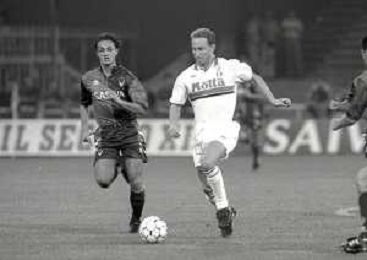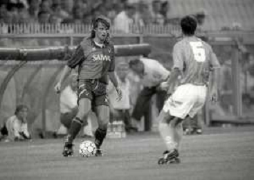 NEG-12-08-1992 GENOVA -TRIANGOLARE DEL MEDITERRANEO CON MILAN-GENOA E NAPOLI NELLA FOTO PREMIAZIONE FRANCO BARESI CAPITANO DEL MILAN AG ALDO LIVERANI SAS