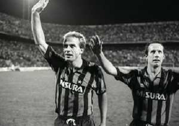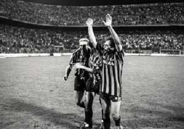 NEG-03-10-1984 MILANO- TRENTADUESIMI DI FINALE DI COPPA UEFA INTER-SPORTFUL STUDENTESC 2-0 NELLA FOTO GIUSEPPE BERGOMI CON KARL HEINZE RUMMENIGGE AG ALDO LIVERANI SAS