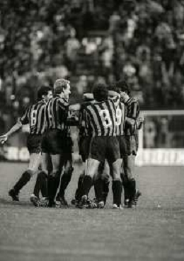 NEG-03-10-1984 MILANO- TRENTADUESIMI DI FINALE DI COPPA UEFA INTER-SPORTFUL STUDENTESC 2-0 NELLA FOTO ABBRACCI GIOCATORI INTER DOPO GOAL AG ALDO LIVERANI SAS