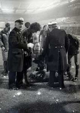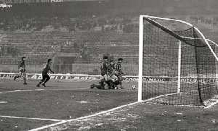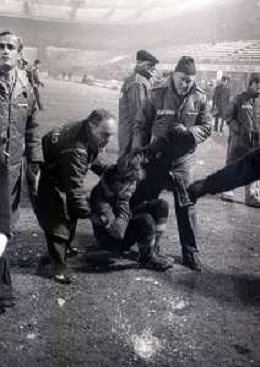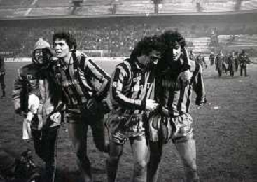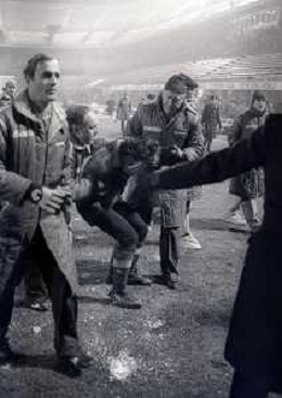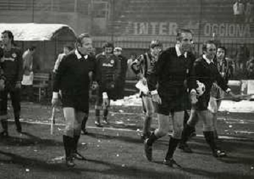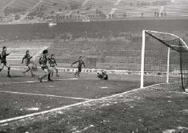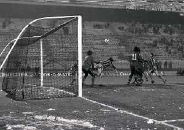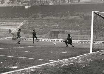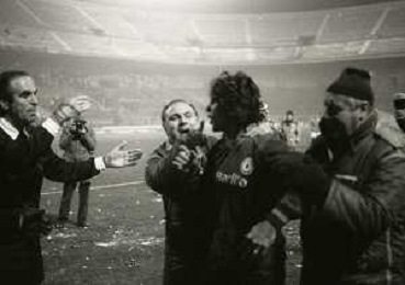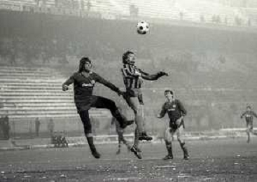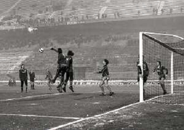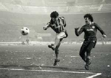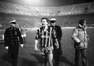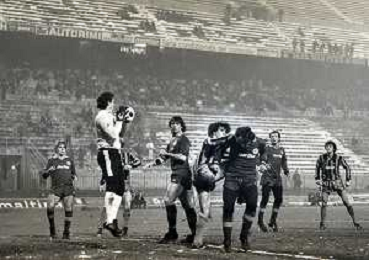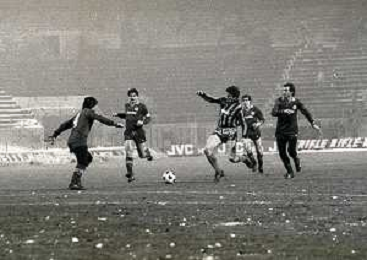 NEG-23-12-1981 MILANO-QUARTI DI FINALE DI COPPA ITALIA RITORNO INTER-ROMA 3-0 NELLA FOTO UN GIOCATORE DELLA ROMA COLPITO DA UNA PALLA DI NEVE DA UN TIFOSO AG ALDO LIVERANI SAS