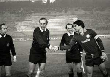 NEG-23-12-1981 MILANO-QUARTI DI FINALE DI COPPA ITALIA RITORNO INTER-ROMA 3-0 NELLA FOTO L'ARBITRO GINO MENICUCCI CON AGOSTINO DI BARTOLOMEI AG ALDO LIVERANI SAS