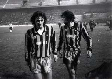 NEG-23-12-1981 MILANO-QUARTI DI FINALE DI COPPA ITALIA RITORNO INTER-ROMA 3-0 NELLA FOTO EVARISTO BECCALOSSI E ALESSANDRO ALTOBELLI AG ALDO LIVERANI SAS