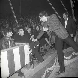 NEG-1968 MLANO CIRCO ORFEI -ADRIANO CELENTANO CON GIANNI MORANDI E ENZO JANNACCI AL CIRCO ORFEI NELL'ANNO 1968 AG ALDO LIVERANI SAS