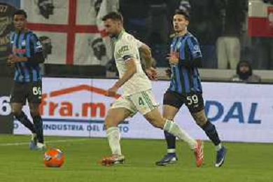 Berat Djimsiti of Atalanta BC makes a save during Atalanta BC vs AS Roma, 18° Serie A Enilive 2025-26 game at New Balance arena in Bergamo (BG), Italy, on January 03, 2026. (Photo by Davide Casentini)-AGENZIA ALDO LIVERANI SAS