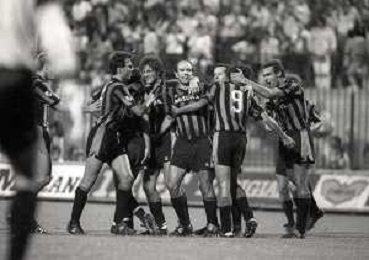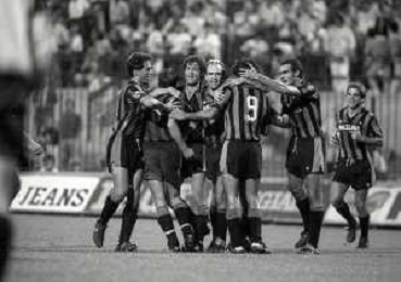 NEG-04-09-1985 -MILANO- 5 GIORNATA DI COPPA ITALIA INTER-AVELLINO 3-1 NELLA FOTO ABBRACCI DOPO GOAL INTER AG ALDO LIVERANI SAS