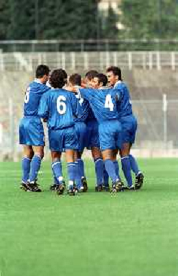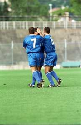 NEG- 15-08-1999 COMO -COPPA ITALIA SERIE C COMO-FERMANA 3-1 NELLA FOTO ABBRACCI GIOCATORI COMO DOPO IL GOAL AG ALDO LIVERANI SAS