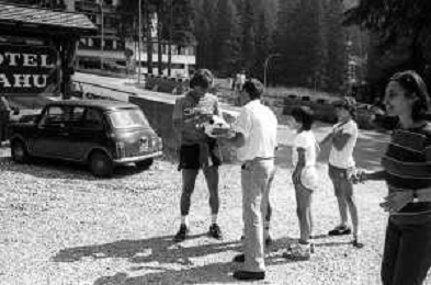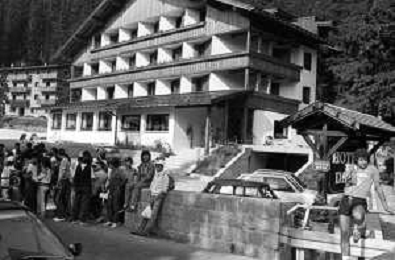NEG- FIORENTINA CALCIO RITIRO ESTIVO PRECAMPIONATO MADONNA DI CAMPIGLIO 1983 NELLA FOTO I TIFOSI IN ATTESA DEI CALCIATORI FUORI DALL’HOTEL AGENZIA ALDO LIVERANI SAS