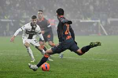 Parma vs Inter nella foto Lautaro Martinez (Inter) al tiro, dietro Lamine Mandela Keita (Parma) Parma 07-01-2026 Stadio Ennio Tardini Parma vs Inter Campionato Serie A Enilive - 19a giornata foto Roberto Garavaglia/Agenzia Aldo Liverani sas