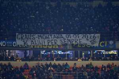 Milano 11.01.2026 Stadio Giuseppe Meazza @Manuela Viganti /Ag. Aldo Liverani sas Inter vs Napoli Campionato Calcio Serie A Enilive 2025/2026 20a giornata Nella foto: strisicone per le vittime di crans montana