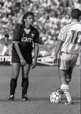 NEG-09-09-1990 PARMA-CAMPIONATO DI CALCIO SERIE A PARMA-JUVENTUS 1-2 NELLA FOTO ROBERTO BAGGIO E DANIELE FORTUNATO AG ALDO LIVERANI SAS